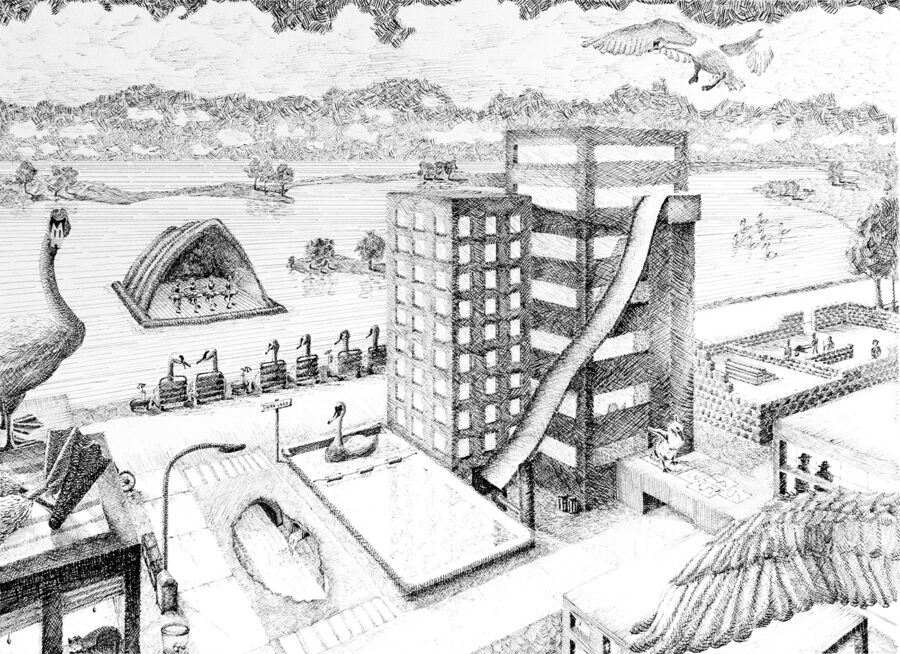 “Swan Lake Perspective” Pen, 24×18